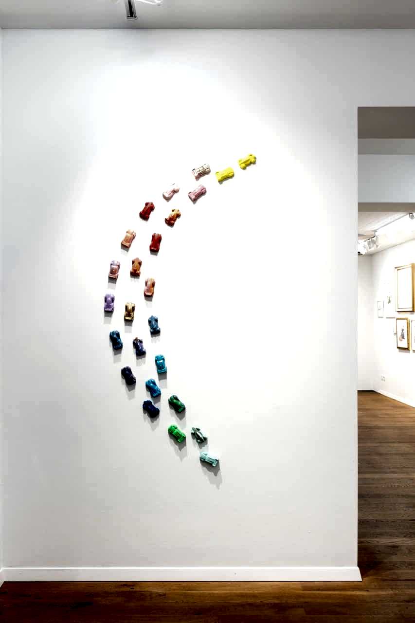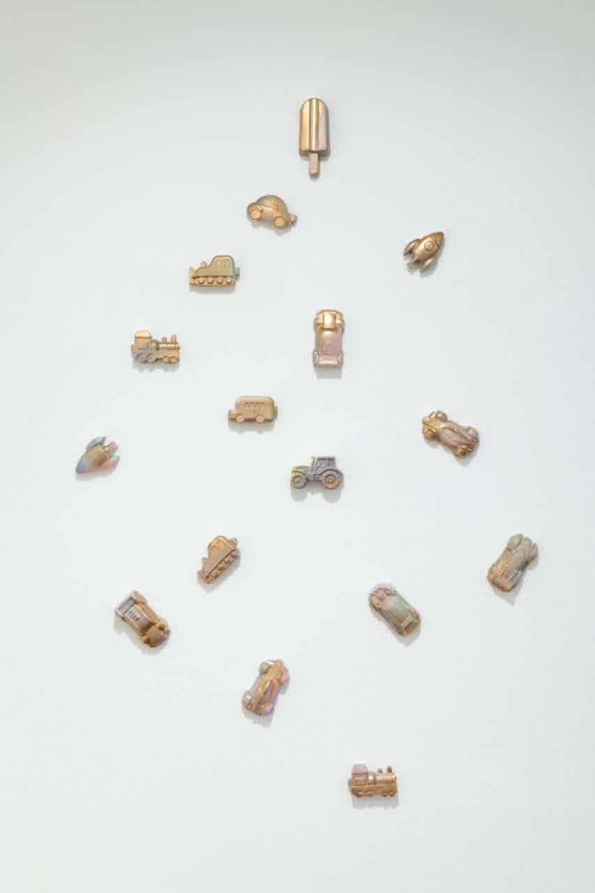 Her oil paintings draw on canonical works of art history, transforming them through subtly humorous and provocative gestures. Koc’s plaster sculptures — cast from sand molds of her young son — add a playful and intimate dimension. They challenge traditional notions of sculpture and point to the connection between devotion and creativity.