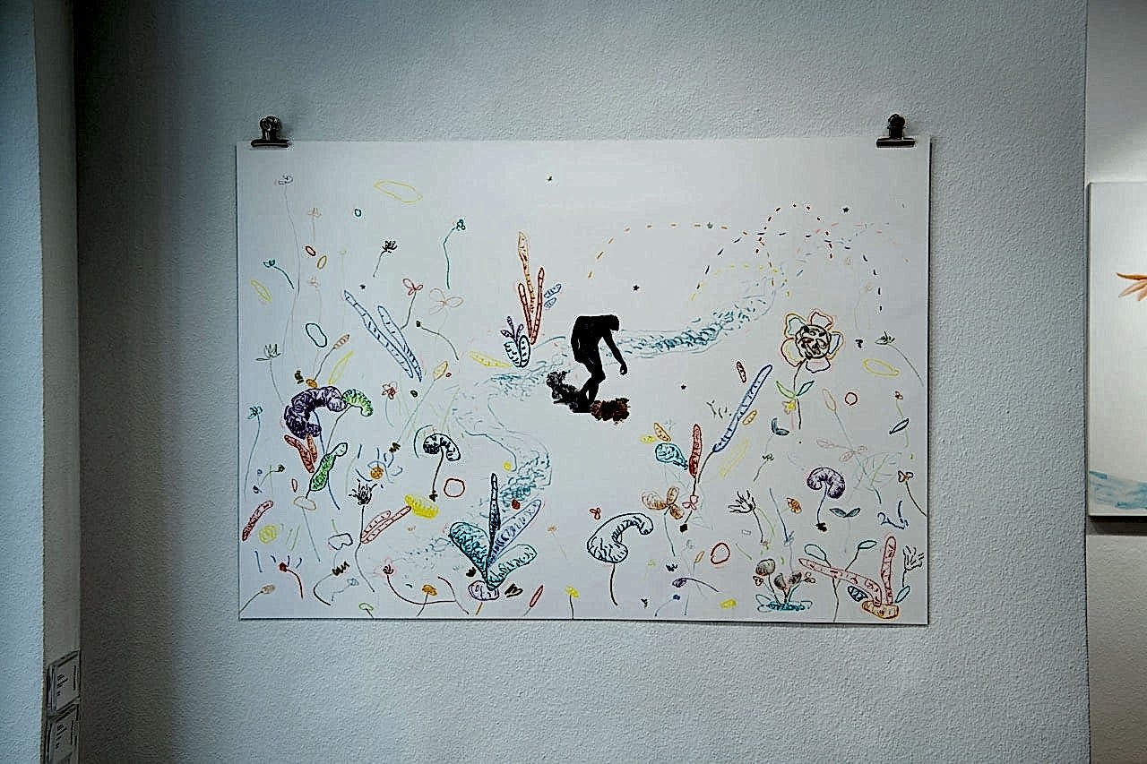 The collage series explores love in its many forms: romantic, passionate, human — always set against the backdrop of ecological and social fractures. Androgynous figures merge with elements of nature and the animal world, dissolving fixed gender identities and portraying the human being as a thinking creature that leaves rigid rules behind. More introspective works such as Sleep Deprivation, Brain Fog, or Wanderer Self illustrate the physical and emotional challenges of lived experience and expand Koc’s dialogue on self-care.